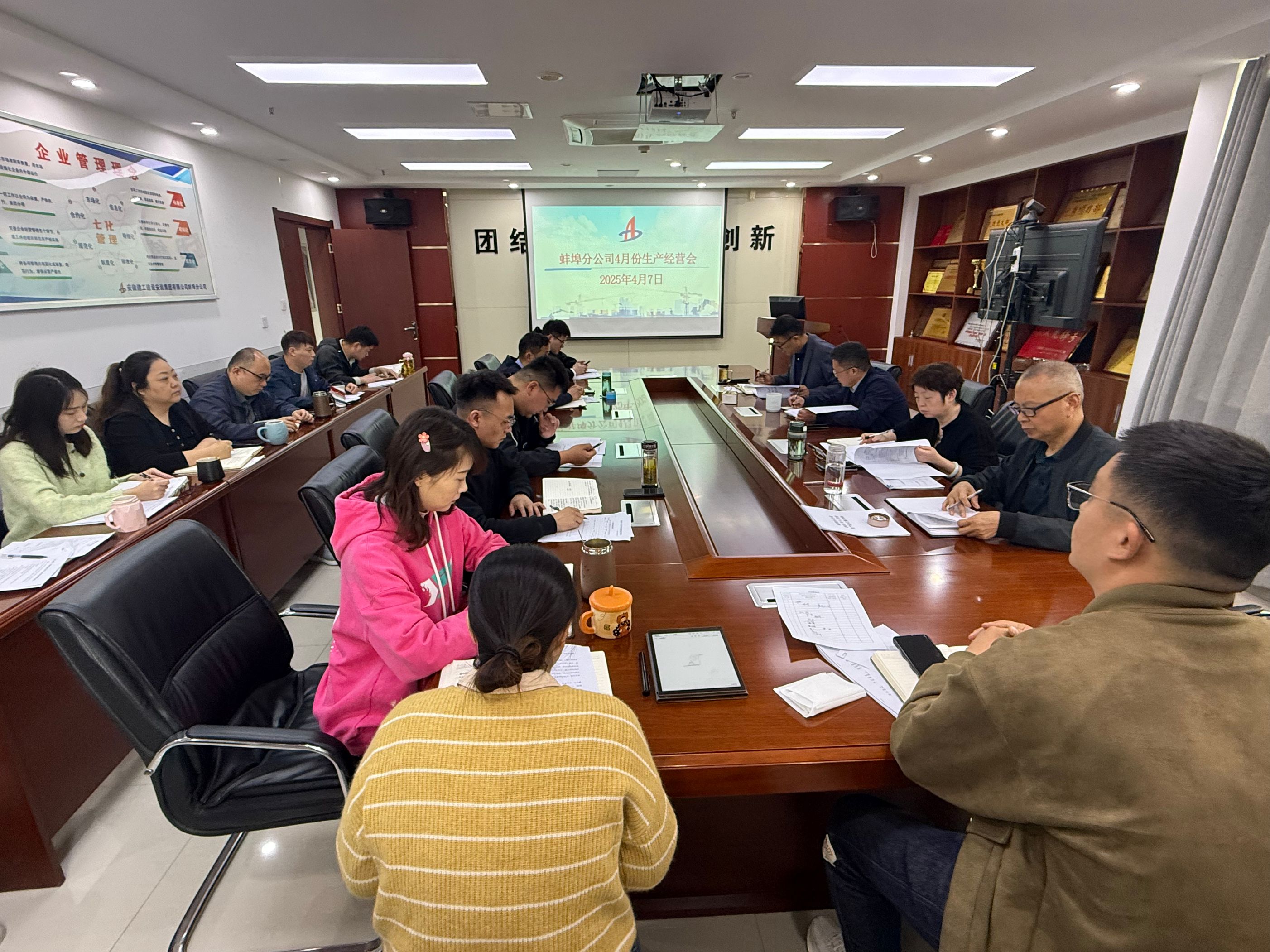 4月7日上午,蚌埠分公司組織召開4月份生產(chǎn)經(jīng)營調(diào)度會,分公司領(lǐng)導(dǎo)班子成員、所屬各項目部、機關(guān)各部門負責(zé)人及工程管理部全體員工參加會議。會議由分公司副經(jīng)理張斌主持。