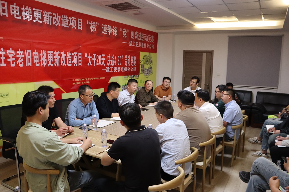 為推動勞動競賽工作的有力開展,進(jìn)一步激發(fā)廣大參建員工立足崗位建新功的勞動激情,推動項(xiàng)目提質(zhì)增效,順利完成項(xiàng)目目標(biāo)任務(wù),4月10日下午,建工安裝電梯分公司蚌埠2024年住宅老舊電梯更新改造項(xiàng)目開展了以“大干20天,決戰(zhàn)4.30”為目標(biāo)的勞動競賽大討論活動。電梯分公司領(lǐng)導(dǎo)班子成員、項(xiàng)目部管理人員、參建單位及勞務(wù)班組代表參加會議。